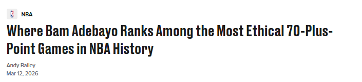 北京时间3月13日,阿德巴约的83分,在NBA历史“70+分”中的合理性能排第几?这场表演之后,大家热议的焦点,更多是这个得分的合理性与含金量,而不是分数本身。